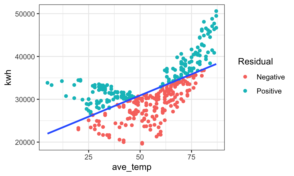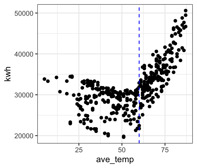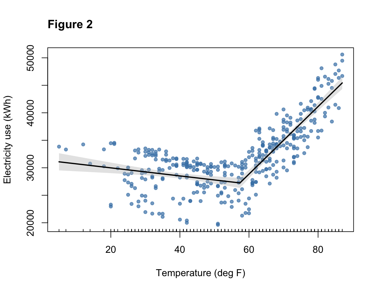 • The positive slope reflects the positive relationship between temperature and electricity use at higher temperatures